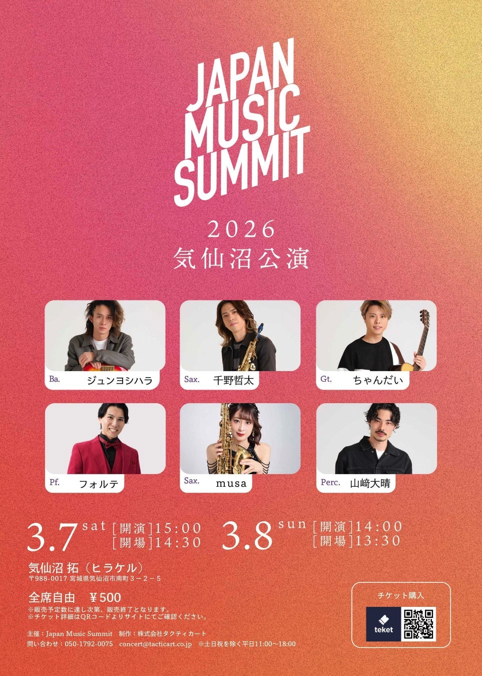 「Japan Music Summit 2026」宮城県内2地域で開催します! (2026/02/26 09:37)