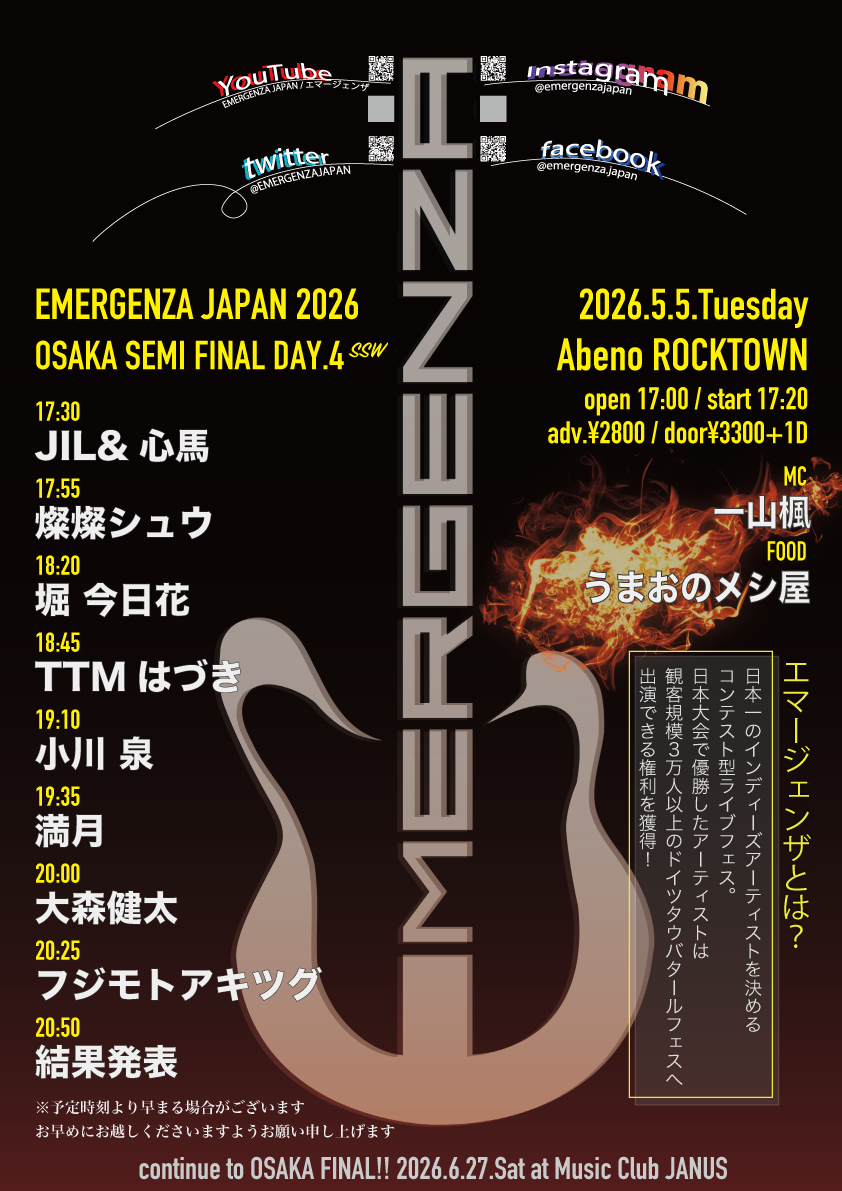 エマージェンザ・ジャパン2026 OSAKA SEMI FINAL開催 (2026/04/20 10:54)