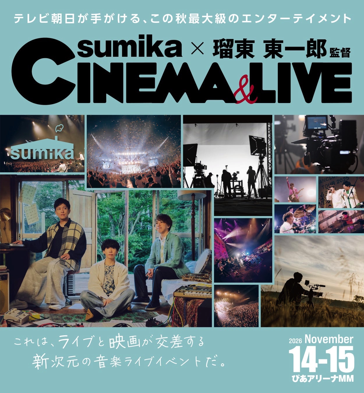 テレビ朝日がお届けする、音楽と映像が融合する新たなライブイベント「sumika×瑠東東一郎 CINEMA&LIVE」開催決定!!! (2026/04/06 10:05)