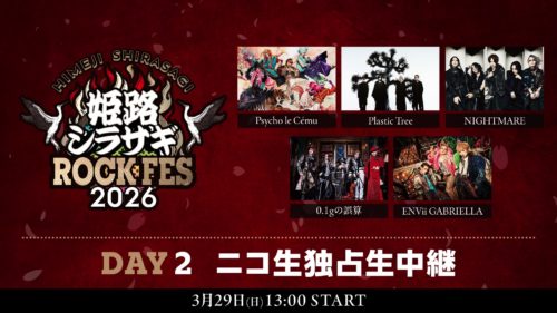 ニコ生独占生中継「姫路シラサギROCK FES 2026」【DAY2】Psycho le Cému、NIGHTMARE、Plastic Tree、0.1gの誤算、ENVii GABRIELLA