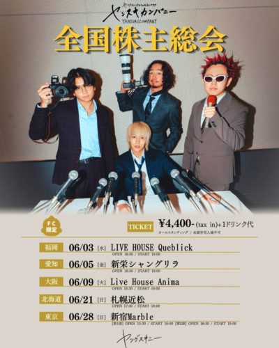 4人組ロックバンドヤングスキニー初のFCツアー、『ヤンスキカンパニー全国株主総会』が開催決定!