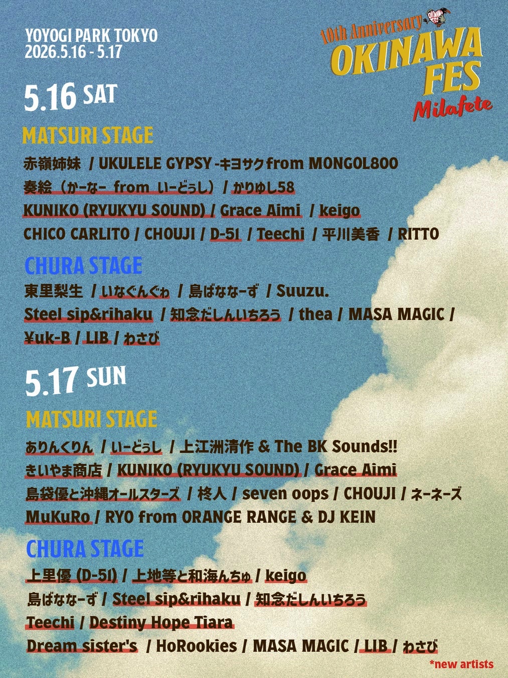 デビュー20周年の「かりゆし58」やBEGINの上地等(Pf&Vo)と島袋優(Gt&Vo)も出演決定!「OKINAWA FES Milafete」... (2026/04/15 07:36)