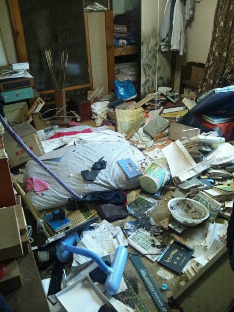 実家の本震による被害はそれほど大きくなく、両親は一晩を過ごした。12日の原発事故による避難指示で、津島地区赤宇木の避難所へ。ご存知の方もいるかもしれないが、後に公表されたSPEEDIで、最も放射線量が高いとされた地域。知らされずに避難していた。13日深夜に初めて母からメールの返信。「大変なことになったね。心配かけてごめんね。今、避難所にいます」。状況はどんどん深刻化し、15日には二本松市に避難。埼玉への移動を決めていたが、別の避難所にいる親戚を探す必要があった。偶然会った父の会社の取引業者の方が一緒に避難所を回ってくれたり、関西の親戚がガソリンを届けてくれて、車と新幹線でそれぞれ埼玉へ。17日、東京駅まで母と祖父を迎えに行った。母は疲れた顔をしていて、祖父は馴染みの作業服を捨てて小綺麗な格好をしていた。