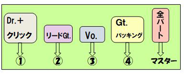 アルペジオのフレーズ、前半がなかなか決まらない。パンチインしてみるとリズムは良くなったがピッチに不満が残る。チューニングをやり直し、録りを重ねる。レガートなリフが多く、ピンポイントな編集がしにくいので、結果何度も演奏することになってしまった。休憩を挟み3回連続で録り、ようやくOK。他のAメロにはこれをコピペし、うまくはまった。