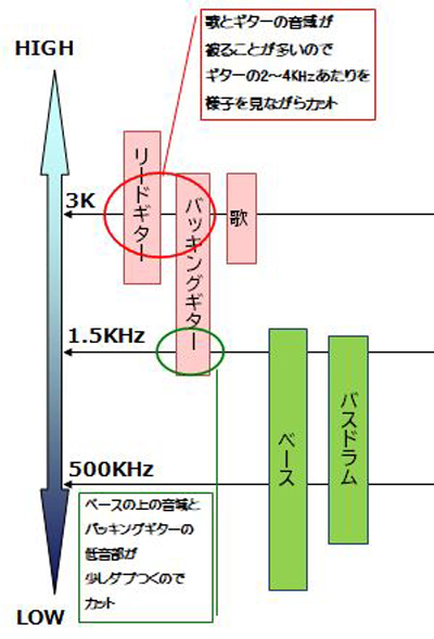 カットすると音の分離は良くなりますがパンチがなくなることもあるので、不必要な成分のみをカットすることが近道と言えそうです。