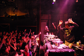 最初は静かにフロアをあたためるプレイ。それにしてもクリスマスのこの日に沢山のお客さん。遠距離恋愛をされているカップルさんも会場にいらっしゃいました。