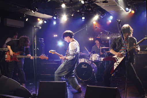 トップバッターは印象的な名前がまず気になる4人組バンド、まぜたらうまい。贅肉を削ぎ落したソリッドな3拍子で始まった彼らのステージは爆発力のある演奏で荒々しく、時にダークな曲調でメランコリックな空気も漂わせる。その混然一体となったサウンドが大きな波のように会場に放たれるので、次の展開が全く予想できない。そんな楽曲が性急に打ち出されていく、ピリリと張り詰めた緊張感溢れるライブだった。