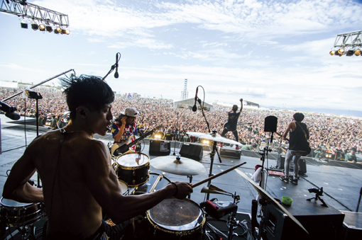 着実にキャリアを積みながら成長し続けるSHISHAMO。期待のガールズロックバンドは、どこまでもキャッチーでありながら要所要所でソリッドな音を放つから本当に油断ならない。また演奏と合わせて、ステージ上のスクリーンに可愛らしいエフェクトの散りばめられた映像が流れるなど、今まであまり“RUSH BALL”では見かけなかったような演出も。次時代の精鋭達が、このイベントに新しい風を吹き込んでいることに頼もしさを覚え、更なる進化にワクワクが止まらない。