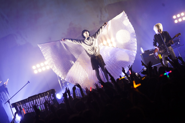 さらに「幻の世界」では炭酸ガスが吹き出す中でジュ●ィ・オングばりに羽を広げて美しく舞ったかと思えば、「お祭り大王」では力強い和太鼓のビートに合わせて神輿に担がれて客席を縦横無尽に闊歩する大王。そのエンターテインメント性に満ち溢れたライブパフォーマンスは、底が知れない。