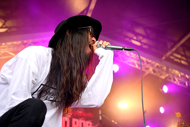 「野外フェスって音量制限があるわけ。それは楽器の話。でも君たちの声は制限がかからない」と巨大なコールを巻き起こし、「一緒に死んでくれ!」とMAHの言葉で本編最後の「KiLLiNG ME」へ。爆発的な興奮が渦巻く中、曲の途中でMAHが「この会場の中にここからギター弾ける猪狩はいるか?」とPA前で観ていたHEY-SMITHの猪狩を呼び、そこから猪狩はクラウドサーフでステージへ。