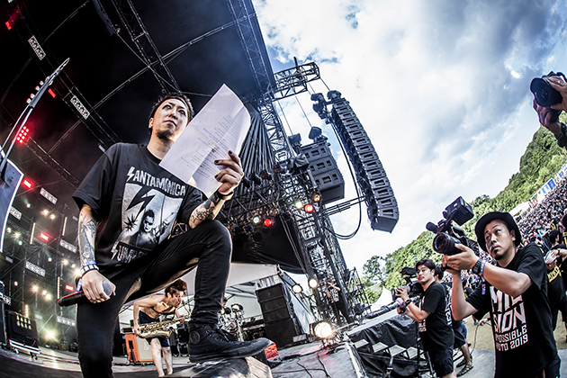 ステージに充満している彼らの気迫は客席にも伝わっていたようで、「It's My Paradise」「IN THIS LIFE」と生き様を音にしたかのような極上チューンに、青空の下でダイバー、大合唱、モッシュの雨あられが降り注ぐ。「Cause You're Alive」「One Day I Just」で心ゆくまで暴れさせた後、最後は軽快かつアッパーな「FOUND」で10-FEETにバトンを繋ぐ。