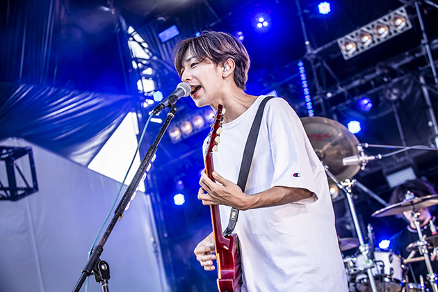 「おはようございます! 3年ぶりのキュウソネコカミです!」とVo./G.ヤマサキセイヤが大きな声で挨拶してライブスタート。「MEGA SHAKE IT!」で早朝から詰めかけた観客の意識をシャッキリと覚醒させ、爆裂的な盛り上がりを作り出す。「3年のうちに完全にヤバイTシャツ屋さんにポジションを奪われた。だけど俺たちはこれからも“京都大作戦”に出たい!」と叫んで笑いを誘いつつ、気持ちを込めた音でオーディエンスの心に着火していく。客席で大きなサークルが起こった「ビビった」、「バンドもフェスも一生続きますように!」と熱い想いを爆発させた「The band」と、まだ午前中にも関わらず数えきれないダイバーを生み出し、「俺、“京都大作戦”でめちゃくちゃやって帰りたいから、他のバンドがやらなさそうなことをやって帰ります!」と“俺の街! 住みやすい!”というキャッチーな歌詞と勢いのあるサウンドが印象的な新曲を初披露。めちゃくちゃ気合いが入っているトップバッターの狂宴、最高の幕開けだ。