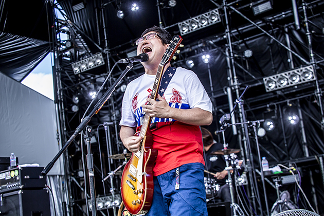 Vo. Monteroが牛若ノ舞台の客席に身を乗り出し、全身全霊から繰り出すスカパンクにオーディエンスが熱狂したFive State Drive。源氏ノ舞台に登場したGLIM SPANKYはG.亀本の胸を焦がすようなギターと、Vo./G.松尾の唯一無二の歌声で魅了する。「怒りをくれよ」では疾走感のあるメロディに合わせ、腕を振り上げて多くのオーディエンスが一緒に歌う。緑が濃い大自然に包まれた太陽が丘に馴染みまくるロックサウンド、爆音を浴びる快感を全身で堪能する。
