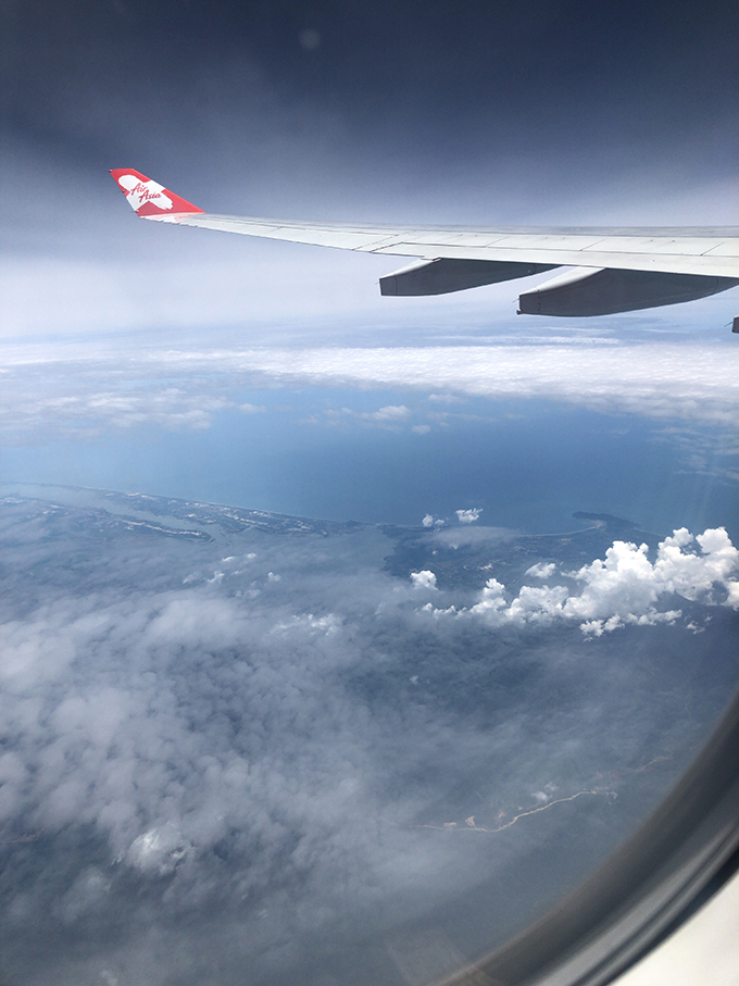 7月某日早朝。2人は成田空港からタイに出発しました。衣類は現地調達という方針なので荷物は小さく、機内持ち込みでOKだったので搭乗手続きもスムーズです。日本からタイまでは約6時間のフライトです。