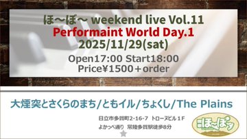 2025/11/29(土) 茨城県日立市多賀町 ほ~ぼ~「Performaint World vol.1」