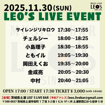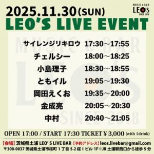 2025/11/30(日) 茨城県土浦市桜町 LEO’S LIVE BAR「LEO’S LIVE EVENT」